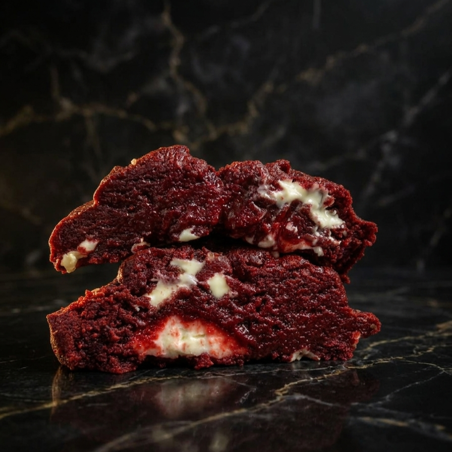 Best-seller ! Cookie cacao rouge velours, garni d’un cheesecake crémeux à base de Philadelphia, sucre glace et vanille. Texture moelleuse et goût unique.